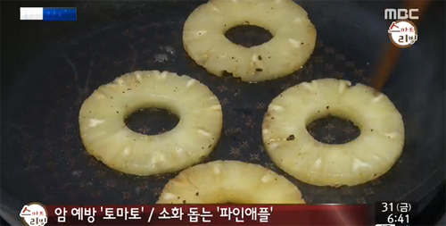 토마토를 구워먹으면 암 예방에 효과적이고 파인애플을 얇게 썰어 노릇하게 구우면