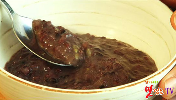 남은 국물에 끓인 죽은 색깔만 봐선 흑미 때문에 팥죽 같지?