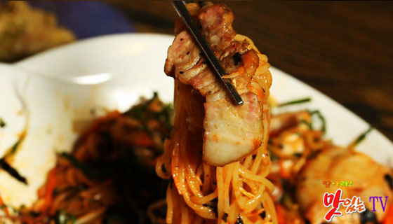 쫄면과 삼겹살바비큐라... 뭔가 안 어울리는 듯 하지만,