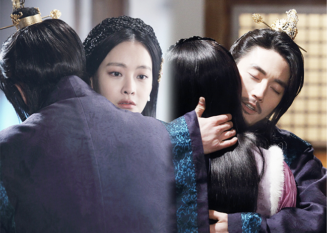 공개된 사진에서 왕소는 신율을 품에 안은 채 편안한 표정을 짓고 있는 반면, 신율은 사랑하는 사람을 안고 가슴 아파하는 여인의 눈빛을 표현하고 있어 눈길을 끈다.