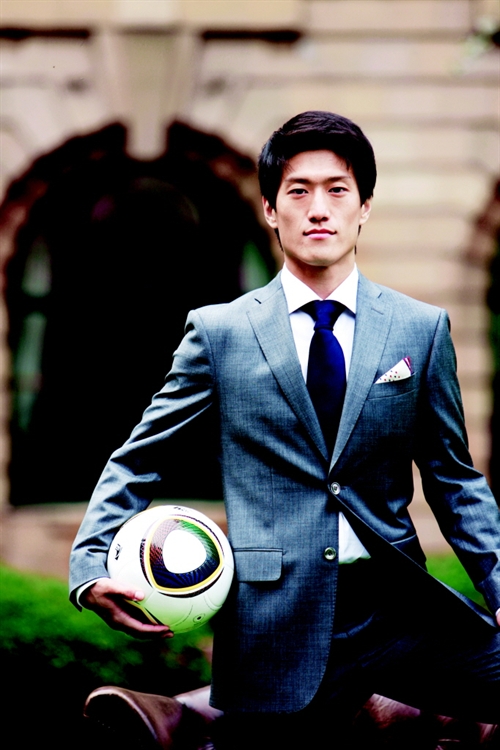 박지성 선수가 있어 우리에게 왠지 익숙한 맨체스터의 시청 '맨체스터 홀'. 런던 북서쪽으로 4시간 남짓한 거리에 위치한 이곳에서 필드 위의 '블루드래곤' 이청용 선수의 화보 촬영이 지난달 28일 진행되었다. 남아공 월드컵 대표팀 공식단복을 협찬하는 제일모직 측이 화보집 발간을 위해 진행한 이번 화보에서 이청용 선수는 '선수'로서 보여주지 않았던 댄디한 매력을 한껏 드러냈다.