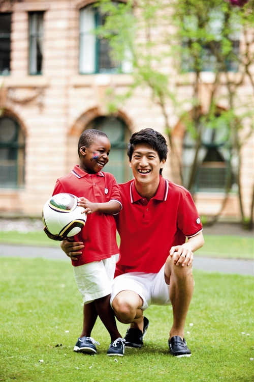 카메라 밖에서도 축구공을 가지고 꼬마와 놀아주는 그는 이미 냉철한 미드필더의 모습이 아닌 자상한 ‘동네 형’이었다.