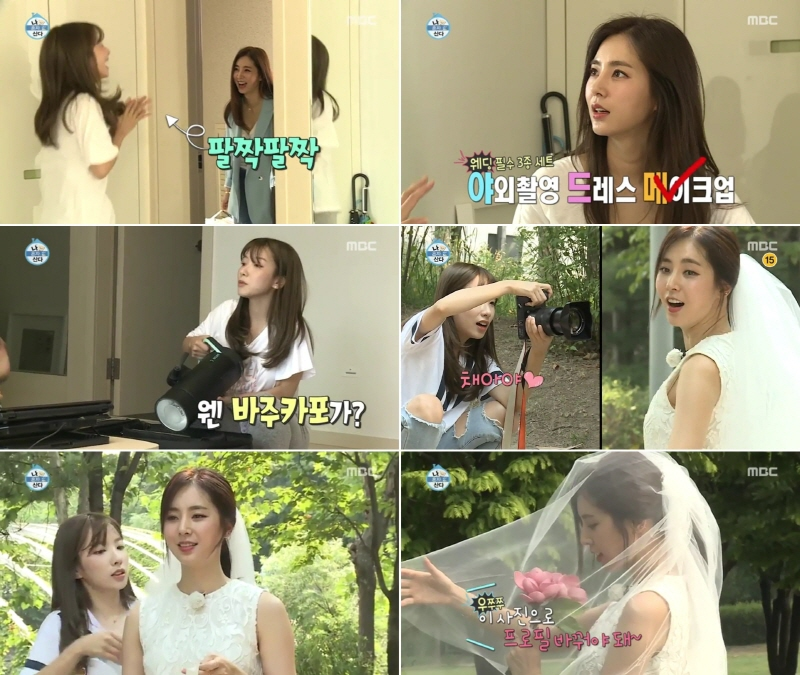 한채아는 레인보우 멤버 지숙의 도움을 받아 셀프 웨딩 화보를 촬영했다. 드레스와 면사포를 빌린 후, 셀프 메이크업을 한 후 서울숲에서 웨딩 촬영을 하는 두 사람의 모습에서 ‘결혼하고 싶은 청춘’의 짠내나는 모습이 그려진 것. 특히 미래에 나타날 신랑을 위해 여백을 만드는 지숙의 센스가 눈길을 끌었다.