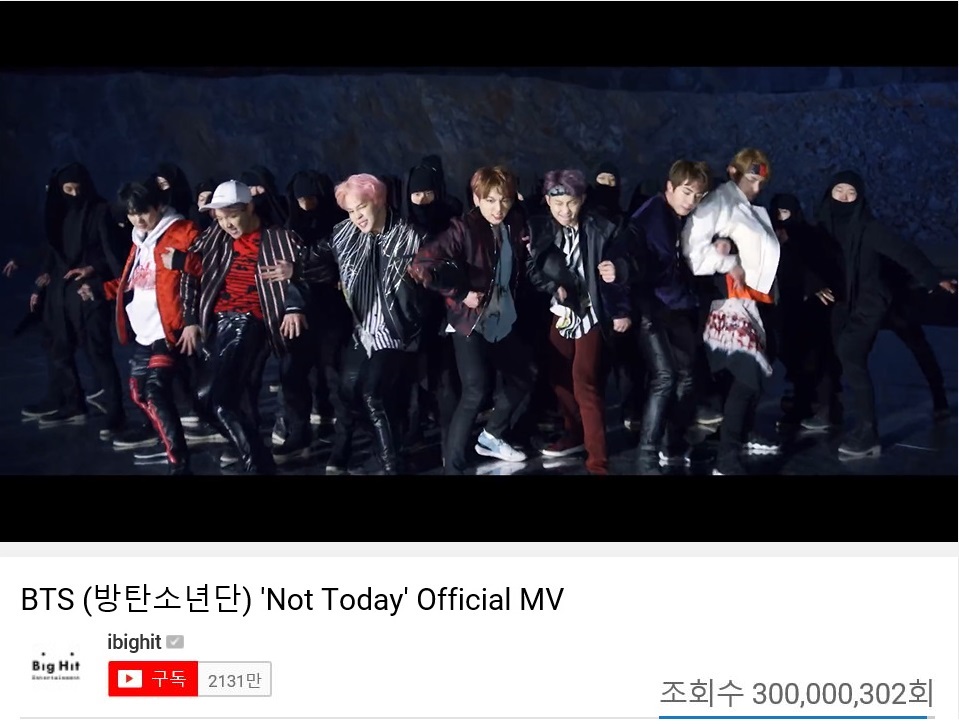 이로써 방탄소년단은 ‘DNA’, ‘불타오르네’, ‘쩔어’, ‘FAKE LOVE’, ‘MIC Drop’ 리믹스, ‘피 땀 눈물’, ‘Save ME', 'IDOL’에 이어 ‘낫 투데이(Not Today)’까지 통산 9번째 3억 뷰 돌파 뮤직비디오를 기록하며 한국 가수 최다 3억 뷰 돌파 뮤직비디오 기록을 자체 경신했다.