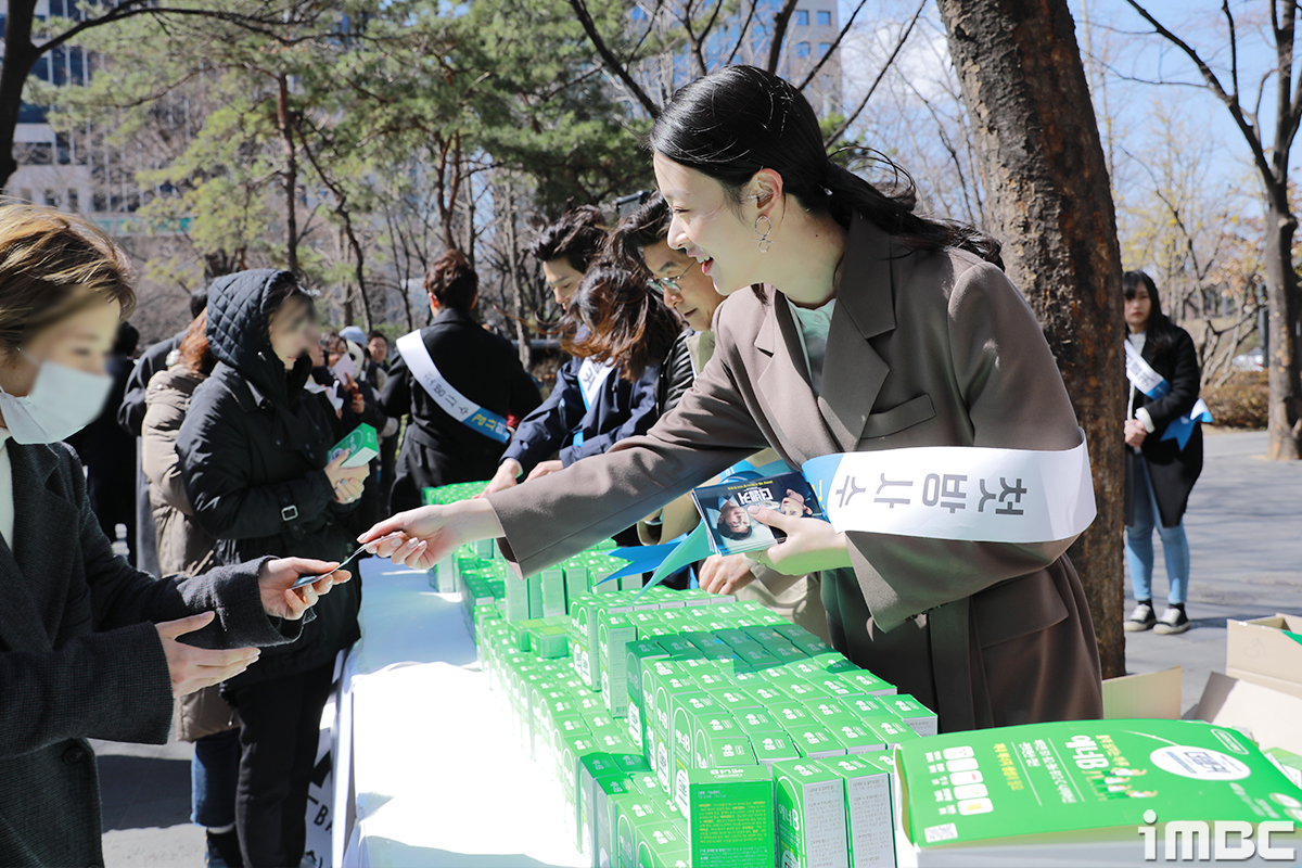 MBC 수목미니시리즈 '더 뱅커' 가 13일 오전 서울 영등포구 여의도 인근에서 '더 뱅커 첫 방 사수 이벤트'를 진행했다.