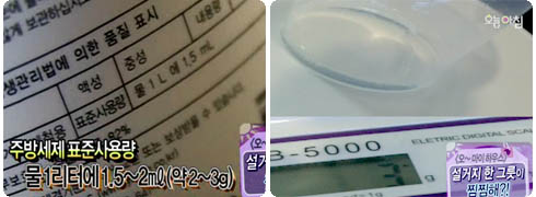 주방 세제 뒷면 표기사항을 자세히 살펴보면 표준사용량이 적혀져 있다.