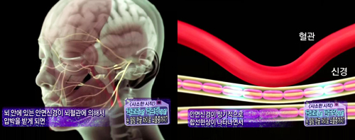 뇌혈관에 의해 압박을 받게 되면서 안면신경이
