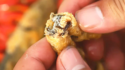 다음 요리는 추어튀김. 튀김옷을 입혀 바삭하게 튀겨낸 추어튀김은 보기만 해도 고소함이 물씬! 평소 미꾸라지에 거부감을 느끼는 사람들도 간편하게 먹을 수 있는 장점이 있다.