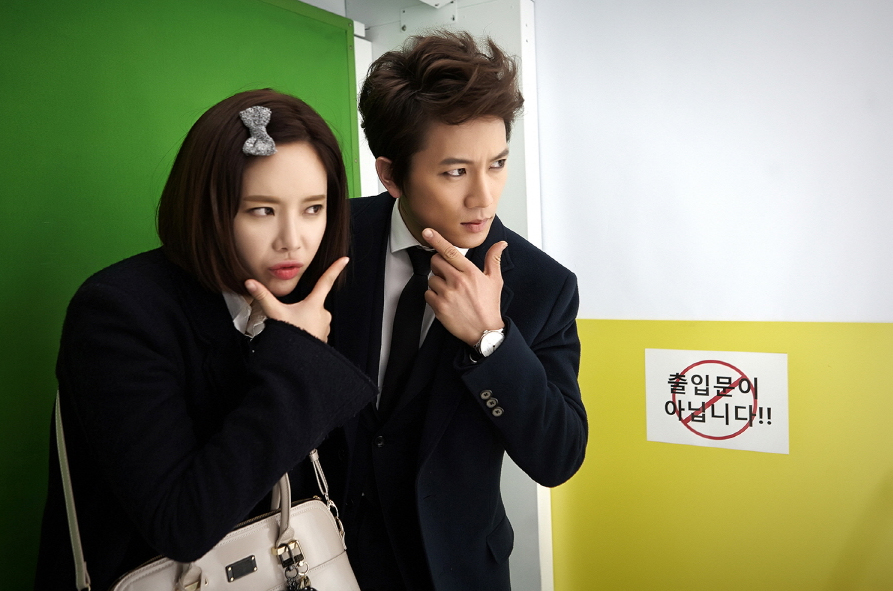 극중 신세기와 오리진이 스티커 사진 부스 안에서 케미 만점 ‘닮은꼴 포스 퍼레이드’를 선보이는 장면. 먼저 지성과 황정음은 깜찍한 ‘손꽃받침 포즈’를 시도, 대비되는 표정을 지어보이며 독특한 느낌의 투 샷을 완성시켰다.