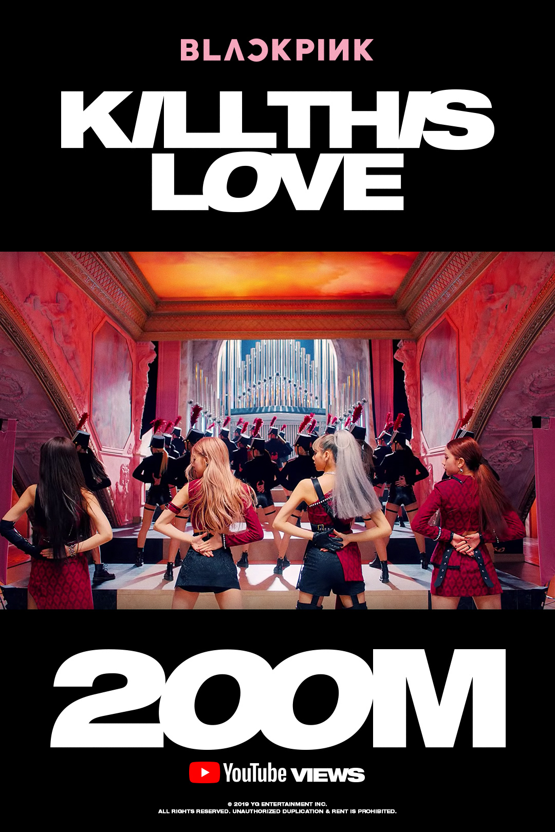 지난 5일 0시 공개된 블랙핑크의 새 EP앨범 타이틀곡 ‘킬 디스 러브(KILL THIS LOVE)’ 뮤직비디오는 어제(16일) 오후 6시 50분께 2억뷰를 넘어섰다. 공개 11일 18시간 50분 만의 기록이다. 전세계 모든 가수를 포함해서는 역대 네번째 성적.