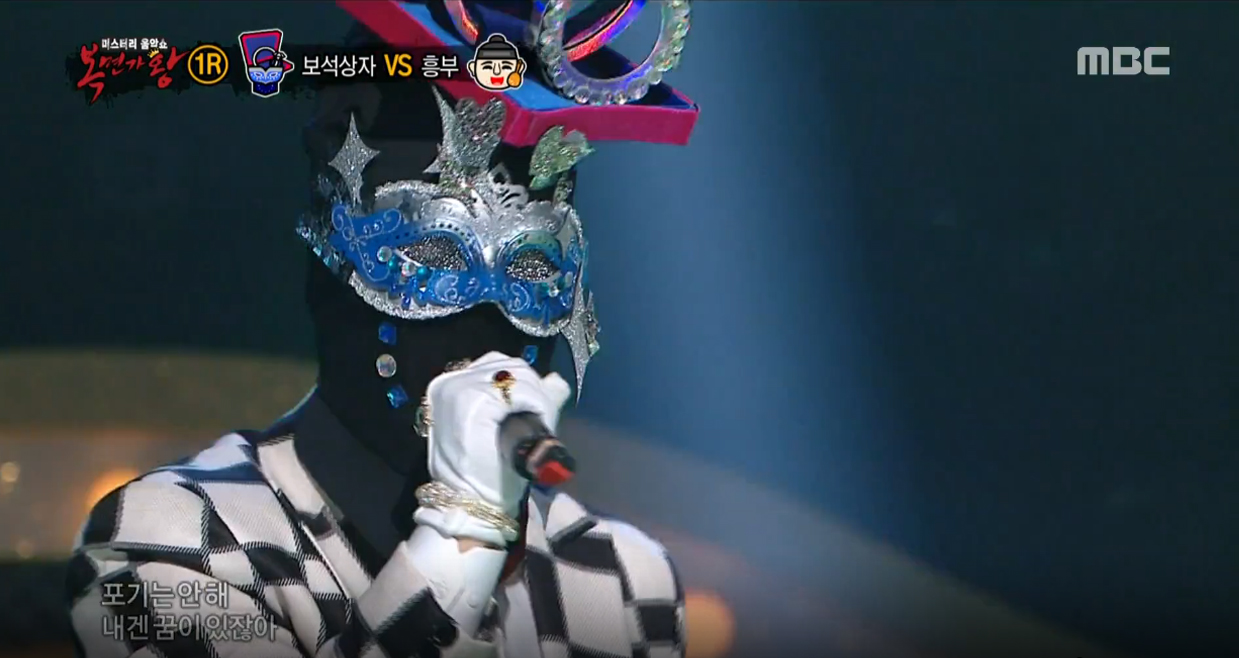 안정된 중저음의 '보석상자'와 풍부한 성량이 받쳐주는 미성을 가진 '흥부'의 듀엣 무대는 환상적 하모니로 눈길을 끌었다. 판정단은 두 사람의 정체에 아이돌이라고 입을 모았다.