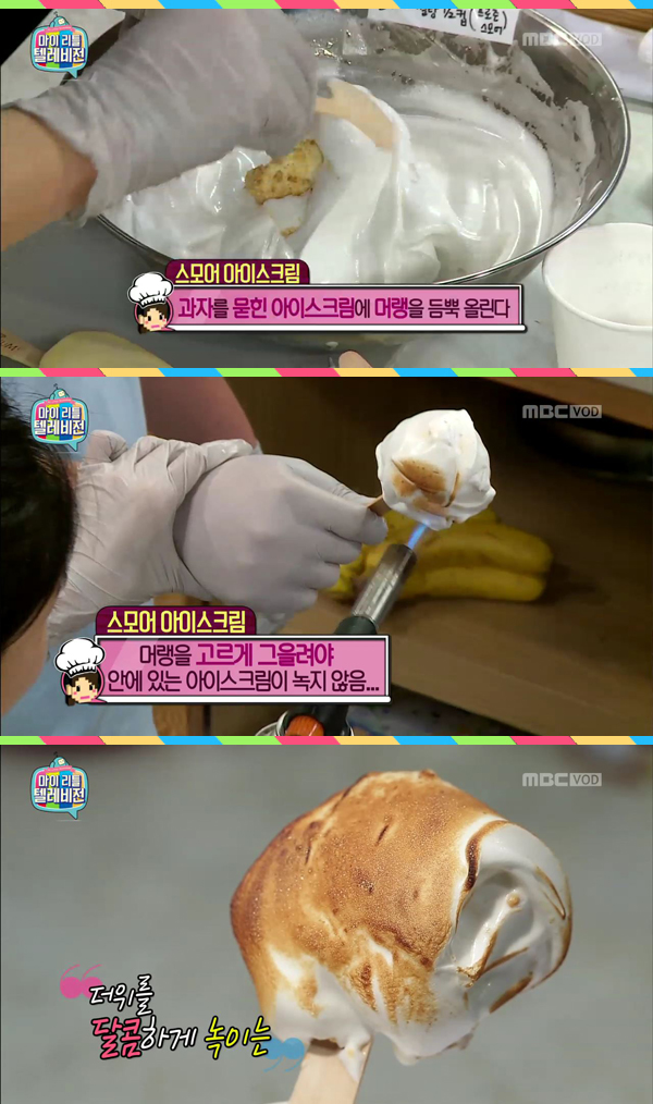 4. 머랭을 위에 발라준 후 불을 이용해 겉을 그을려주면 완성!