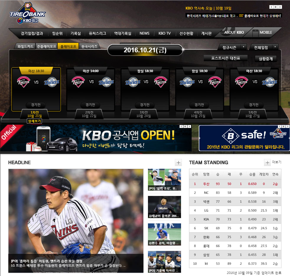 iMBC연예 취재팀 | 화면캡쳐 2016 KBO 포스트 시즌 페이지