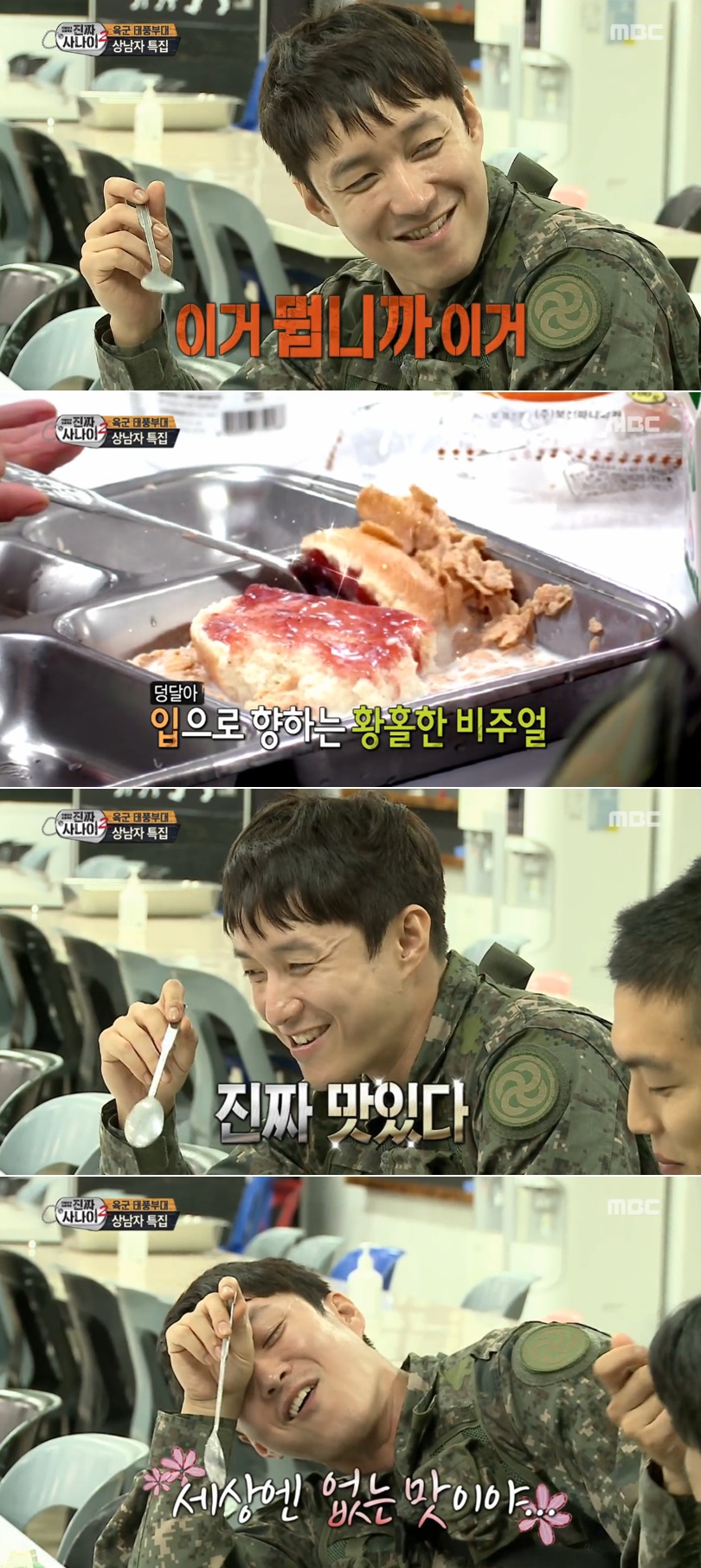 20일에 방송된 MBC 예능프로그램 <일밤-진짜 사나이>에서는 저마다의 방식으로 군대리아를 먹는 멤버들의 모습이 그려졌다.