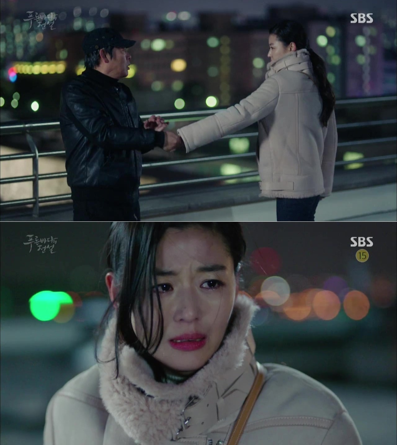 11일 방송된 SBS 수목 드라마 <푸른 바다의 전설> 16회에서 허준재(이민호)가 인어 심청(전지현)으로 인해 어린 시절 헤어졌던 친엄마 모유란(나영희)과 재회한 모습, 자신들을 둘러싼 위기를 적극적으로 해결하려는 모습이 그려졌다.