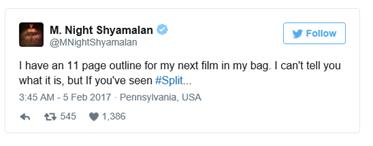 M. 나이트 샤말란 감독이 <식스센스>에 이은 자신의 최고 흥행작 <23 아이덴티티>의 속편 제작을 암시했다. 영화 <23 아이덴티티>는 23개의 다중인격을 가진 남자 ‘케빈’(제임스 맥어보이)이 지금까지 나타난 적 없는 24번째 인격의 지시로 소녀들을 납치하면서 벌어지는 심리 스릴러.