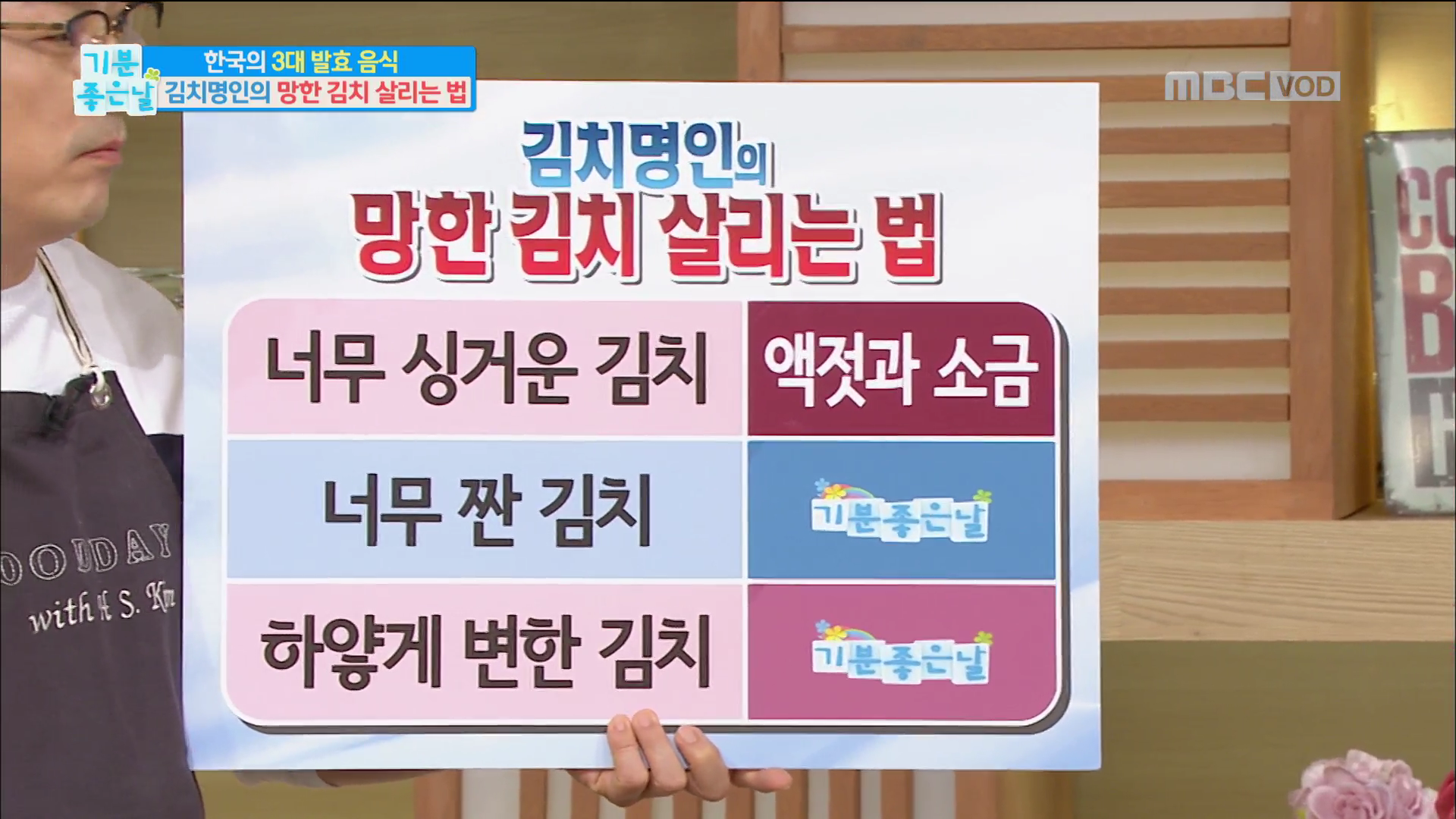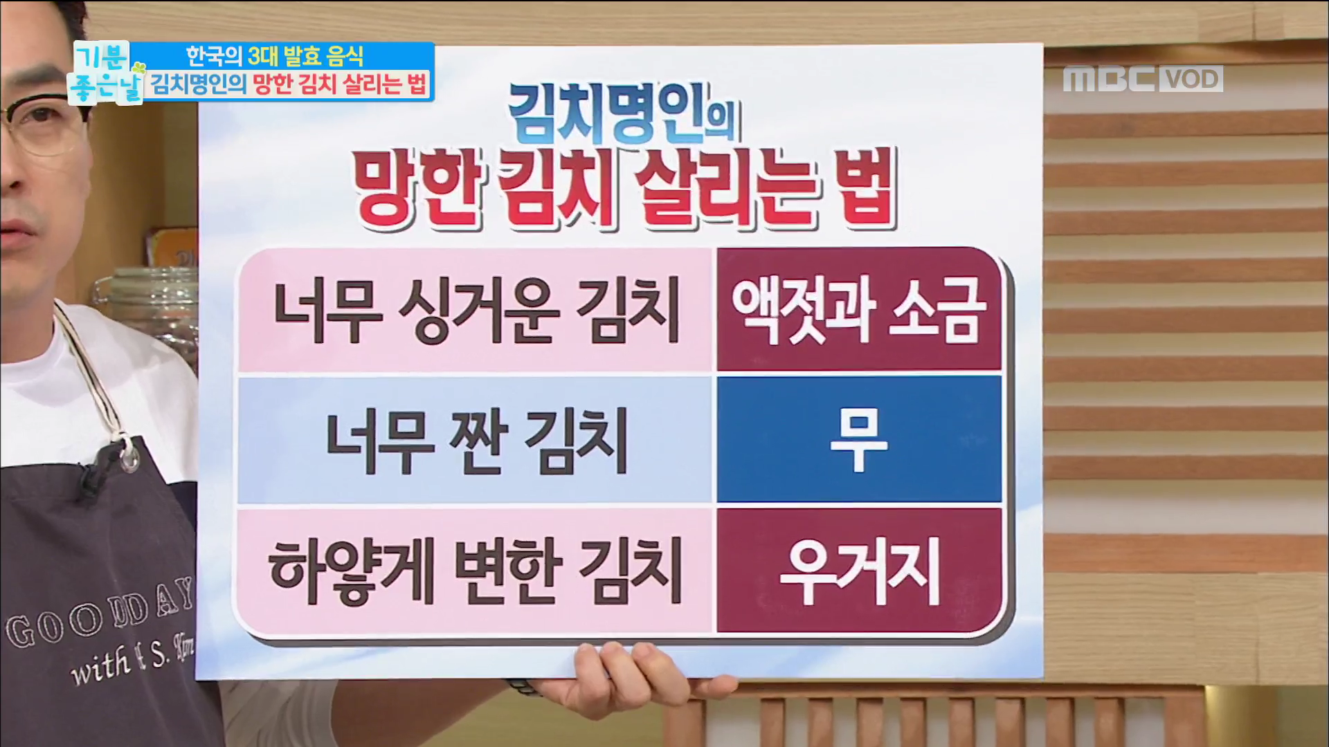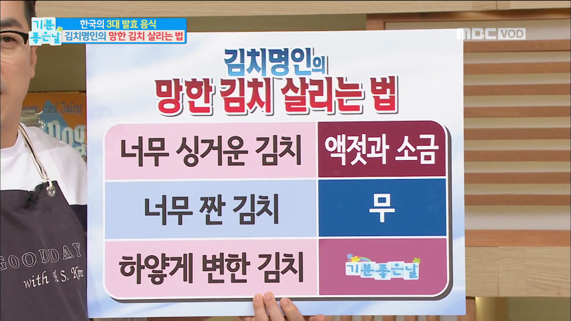 김치 사이에 얇게 썬 무를 넣으면 무가 소금기를 흡수하여 짠맛이 줄어든다.