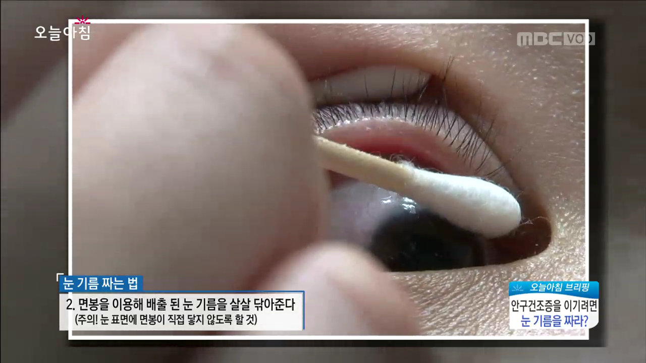 눈 기름을 짜서 눈 기름이 제대로 배출되도록 하는 것이 무엇보다 중요하다.