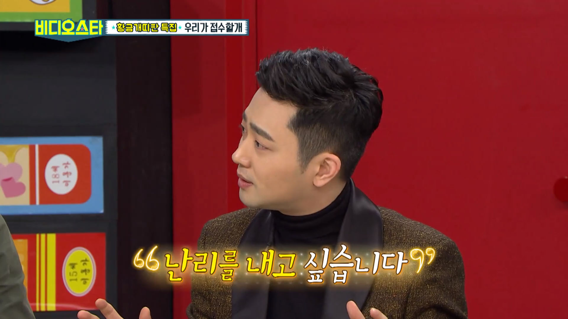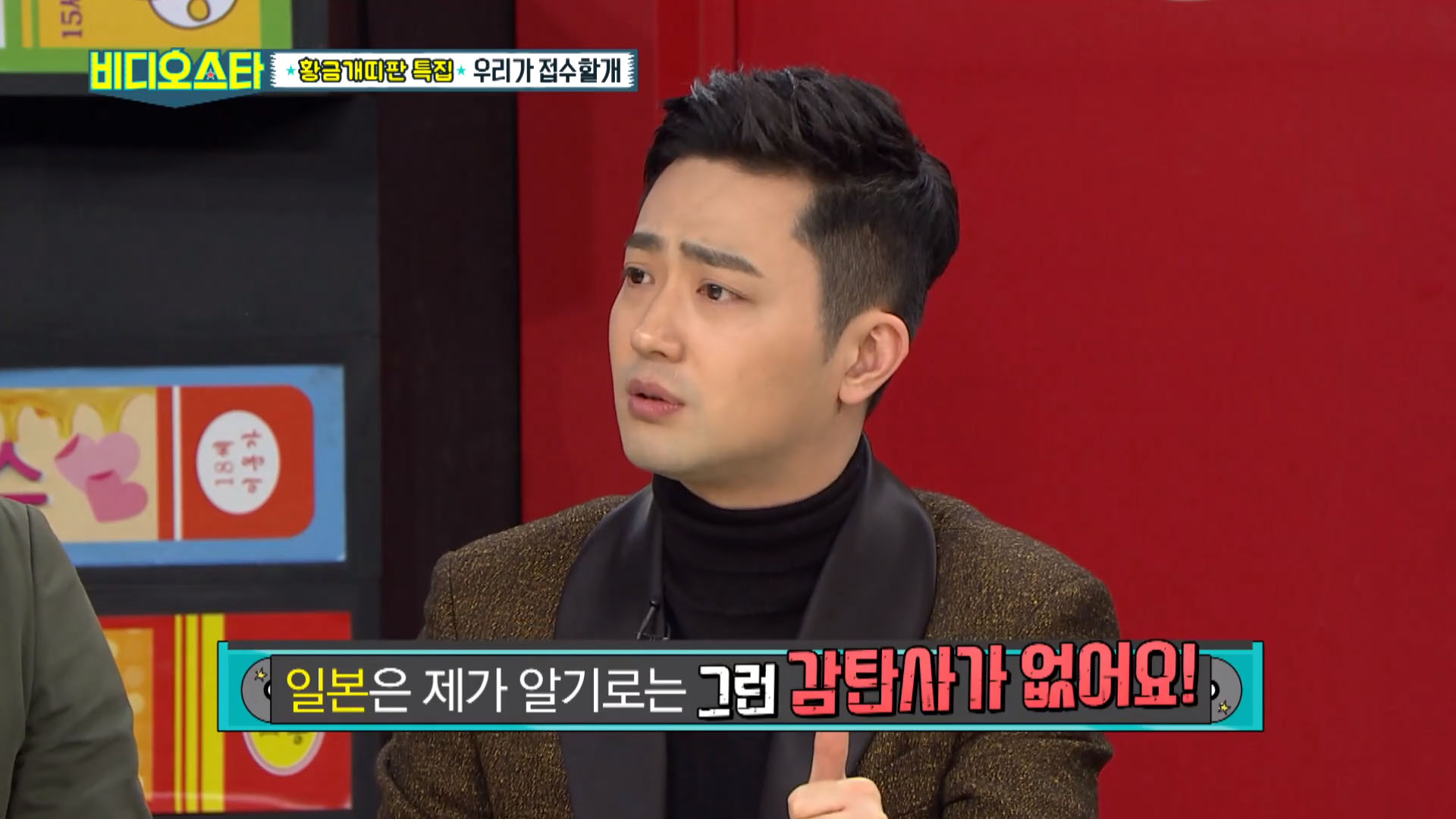 30일 오후 8시 30분 방송된 MBC에브리원 ‘비디오스타’는 ‘황금 개띠 판 특집 우리가 접수할개’로 꾸며졌다. 이날 특집에는 개띠 스타 현진영, 박현빈, 줄리엔강, 김경식, 허영지가 출연했다.