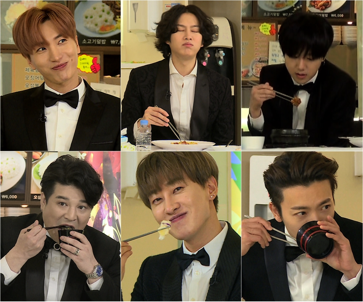 ‘슈퍼TV’가 슈퍼주니어 멤버들의 ‘6인 6색’ 자신만만한 먹방 포토를 공개했다. 이특-희철-예성-신동-은혁-동해의 여유만만한 모습이 스틸만으로도 웃음을 자아낸다.