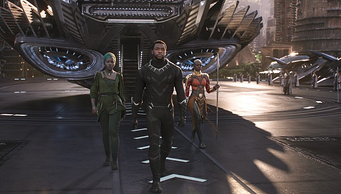 4월 개봉예정인 ‘어벤져스: 인피니트 워’와 함께 ‘블랙팬서’를 기다리는 관객이 많았을 것이다. 한국 관객들이 '믿고 보는' 마블 시리즈의 올해 첫 영화이기 때문이다. ‘블랙팬서’는 주요 배역의 출연 배우들이 전부 흑인 배우라는 점에서도 흔치 않은 할리우드 영화이며, 마블의 첫 흑인 히어로무비다. ’어벤져스: 에이지 오브 울트론‘이 동유럽의 가상국가 소코비아를 배경으로 싸웠다면, ’블랙팬서‘는 아프리카 배경의 와칸다 왕국을 창조해냈다. 와칸다는 아프리카의 전통과 자연은 그대로 유지하되 기술만 최첨단으로 발전한 가상의 국가다. 여기에 어벤져스 군단도 지키려 했던 ’비브라늄‘이 대량 매장되어 있고, 왕국의 왕은 백성과 비브라늄을 지켜야 하는 숙명을 가지고 태어난다. 와칸다의 아름다운 풍광과 아프리카의 전통 노래와 춤, 부족들의 화려한 민족의상을 보는 재미가 크다. 아차, 한국 관객만이 웃을 수 있는 대사 포인트도 있다. "안녕하세요" "위스키 한 잔이요"를 말하는 여배우 루피타 뇽의 장면에서는 다들 기분 좋게 웃을 수 있을 것이다. 자갈치시장의 간판과 부산의 병원, 카페, 음식점 등의 간판이 어지러이 뒤섞인 길에서 카체이싱을 하는 외국 히어로들의 장면이 꽤 길게 포진되어 있다.