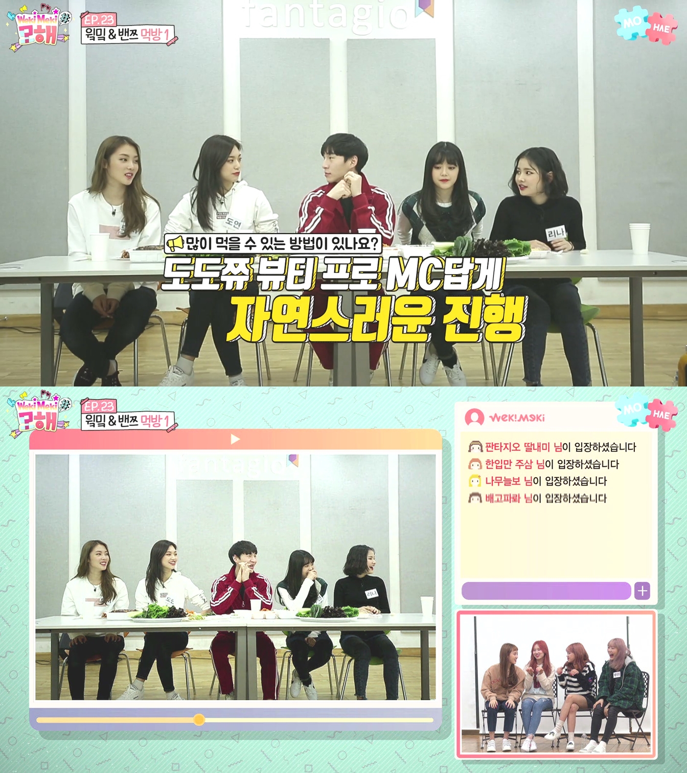 위키미키는 23일 오후 5시 웹 리얼리티 프로그램 '위키미키 모해'에서 먹방(먹는 방송)으로 유명한 콘텐츠 크리에이터 밴쯔와 만나 신개념 먹방을 선보인다.