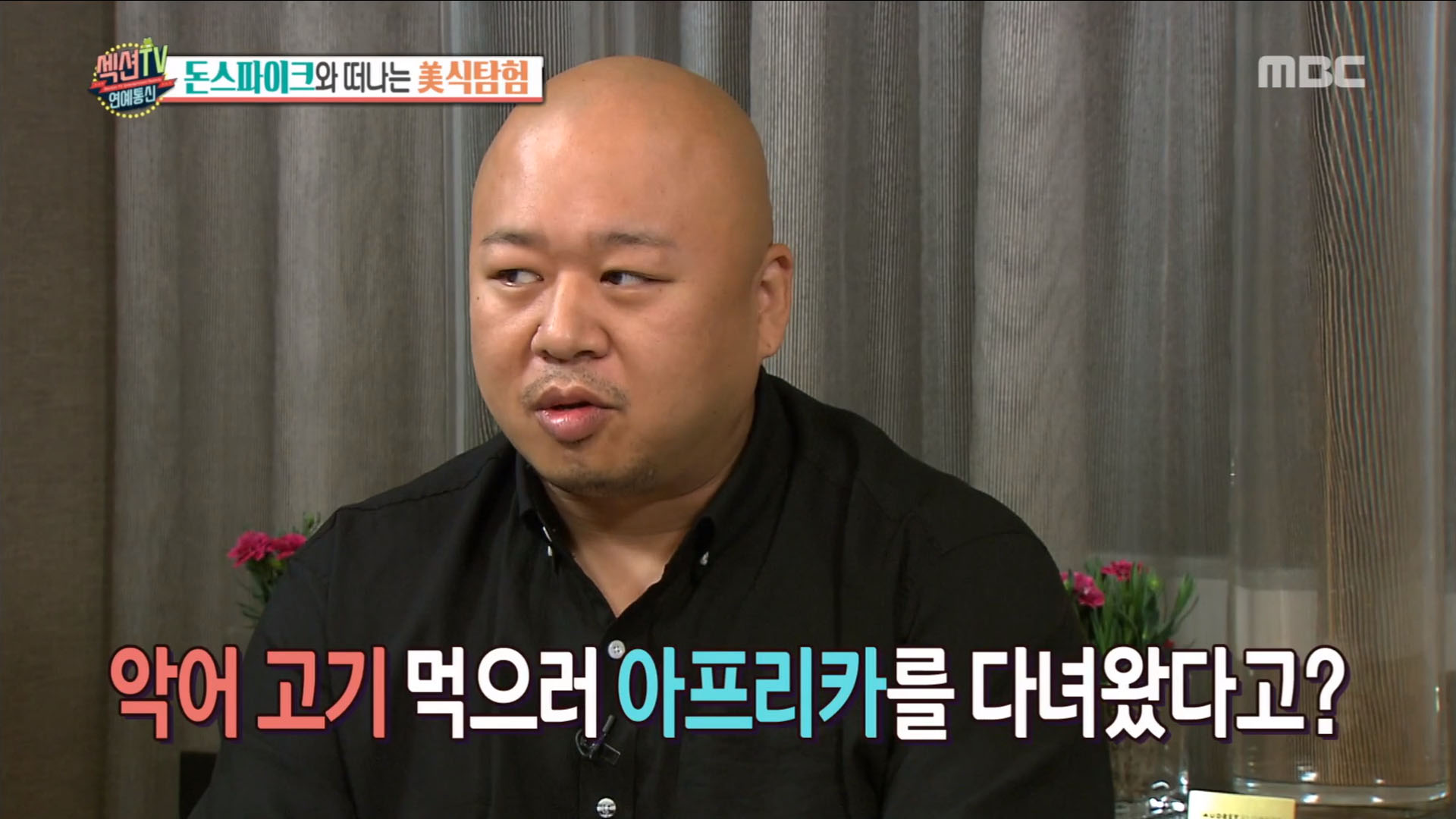 그러나 돈스파이크는 “굉장히 실망했어요.”라며 악어튀김이 마치 “고무지우개 같은 식감에 닭 가슴살 맛이 났다.”고 덧붙였다. 또한 돈스파이크는 음식을 먹으러 가고 싶은 나라를 묻는 질문에 남미라고 대답하며 “아르헨티나에 아사도라는 요리를 먹고 싶다.”고 전했다. 아사도는 숯불에 오랜 시간 익혀서 나오는 바비큐 요리이다. 그 후 돈스파이크는 자신의 냉장고 안에 들어있는 세계 3대 진미에 대해서 언급했다. 세계 3대 진미인 트러플과 캐비어, 푸아그라 뿐만 아니라 세계 4대 진미에 속하는 도토리를 먹여 키운 이베리코 흑돼지까지 있다고 공개했다. 이날 제공되는 음식은 최현석 셰프가 직접 만든 요리로 인터뷰 도중 깜짝 등장해 캐비어를 얹은 새우푸딩과 수비드한 달걀 안에 든 무조림 요리에 대해 설명하기도 했다.