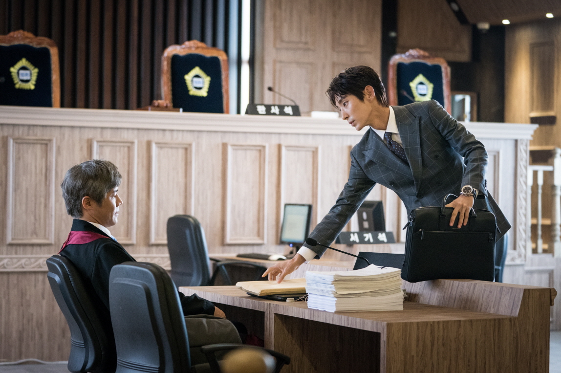 과거 박호산은 이준기를 ‘학교 다녀온 변호사’로 만들며 그에게 유일하게 별을 안긴 문제적 검사로 사건의 진실과 의뢰자의 말 한마디보다 서류에 적힌 팩트와 숫자만 믿는 냉철 주의자다. 그런 가운데 공개된 사진에는 검사 박호산에게 의문의 서류를 건네는 변호사 이준기의 모습이 담겨 있어 이목을 집중시킨다.
