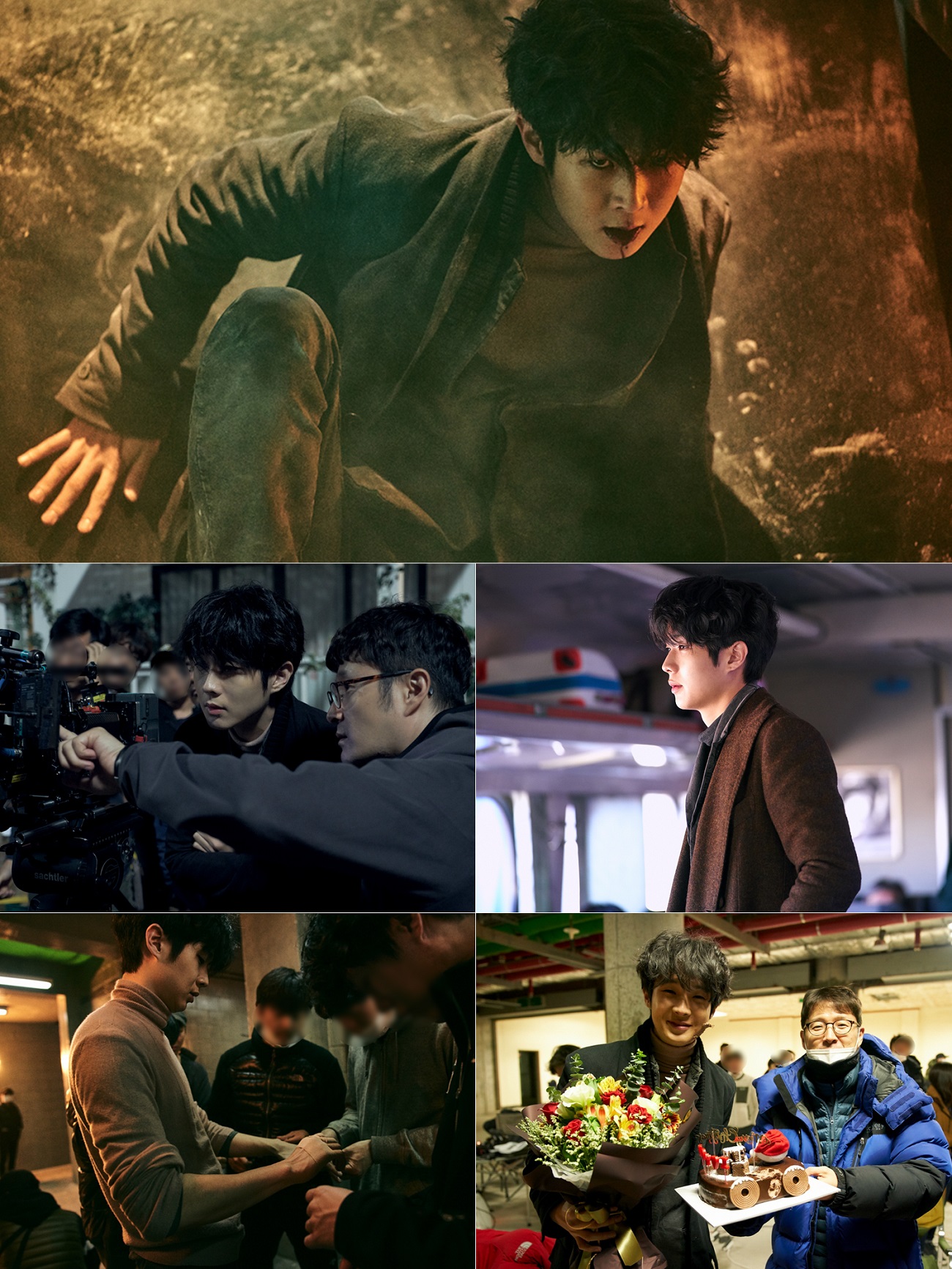 부상이 염려되는 현장인 만큼, 꼼꼼하게 손에 테이핑을 감으며 촬영을 준비하는 모습에서 기분 좋은 긴장감이 느껴진다. 흙먼지를 뒤집어 쓰고 입가엔 피가 흐르는 컷에서는 우리가 몰랐던 최우식의 새로운 얼굴을 찾아볼 수 있다. 특히 상대역인 김다미(구자윤 역)를 노려보는 눈빛은 보는 사람까지 얼어붙게 만들 정도로 섬뜻하고 강렬하다. 또한 마지막 촬영 날, 박훈정 감독과 함께 케이크를 들고 다정하게 카메라를 바라보는 사진은 훈훈했던 현장 분위기를 짐작케 한다.