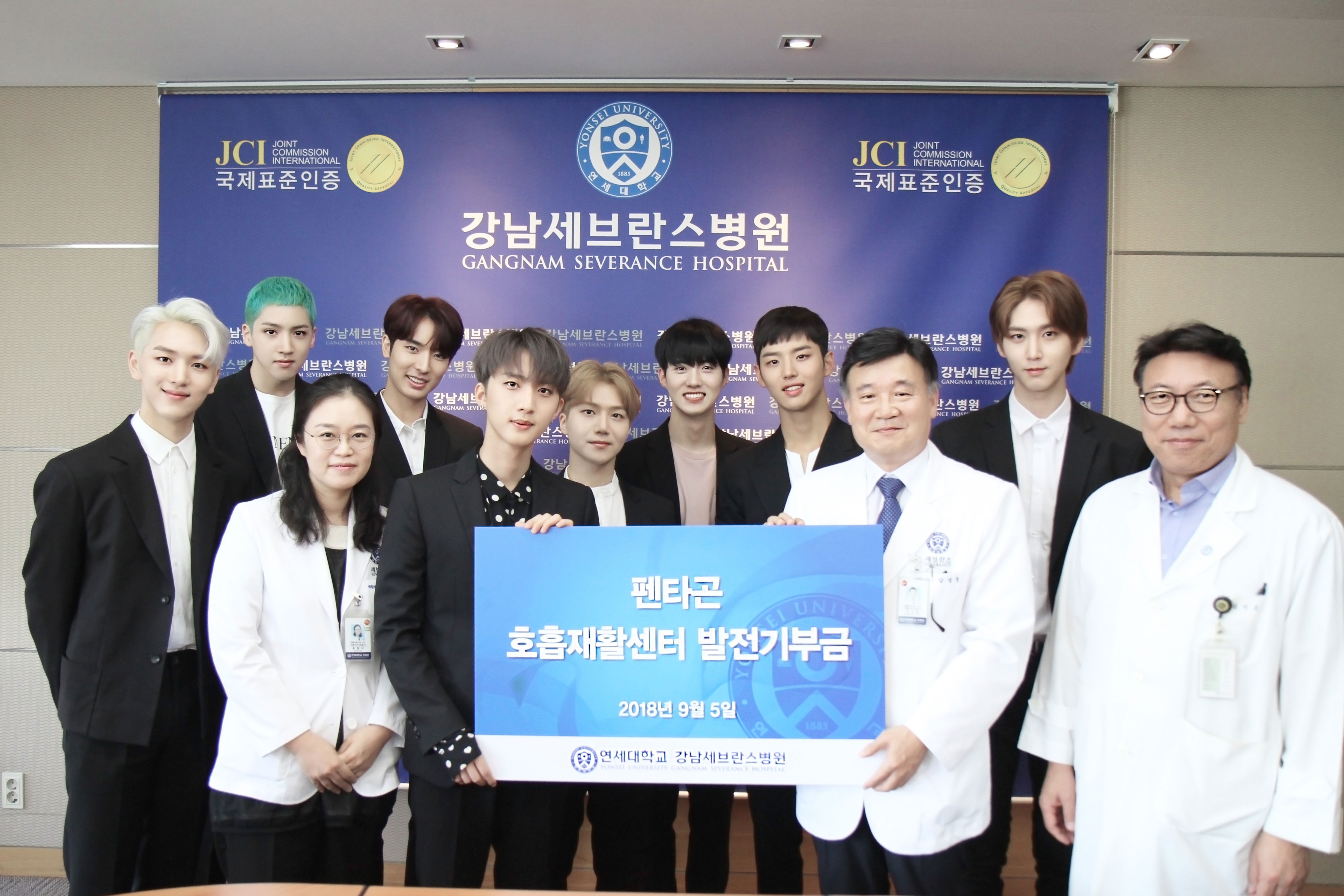 펜타곤은 지난 5일 강남 세브란스병원 호흡재활센터를 찾아 신경근육계 질환 환자들을 위해 써달라며 기부금 5천만원을 전달했다. 이번 기부금은 강남세브란스병원 호흡재활센터를 통해 희귀 신경근육질환 환자들을 위해 사용될 예정이다.