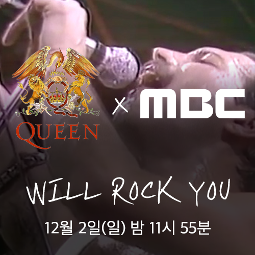<특집 지상 최대의 콘서트 라이브 에이드>라는 제목으로 방영되는 '퀸'의 'Live aid' 공연 중계방송은 12/2(일) 밤 11시 55분 MBC에서 방송된다.