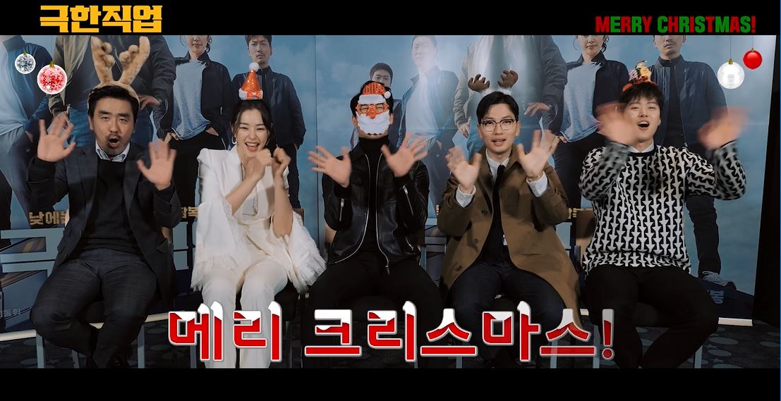 '극한직업'의 배우들이 크리스마스를 맞아 크리스마스 인사 영상을 공개했다. 영화 '극한직업'은 해체 위기의 마약반 5인방이 범죄조직 소탕을 위해 위장창업한 ‘마약치킨’이 일약 맛집으로 입소문을 타게 되면서 벌어지는 이야기를 담은 코믹 수사극.
