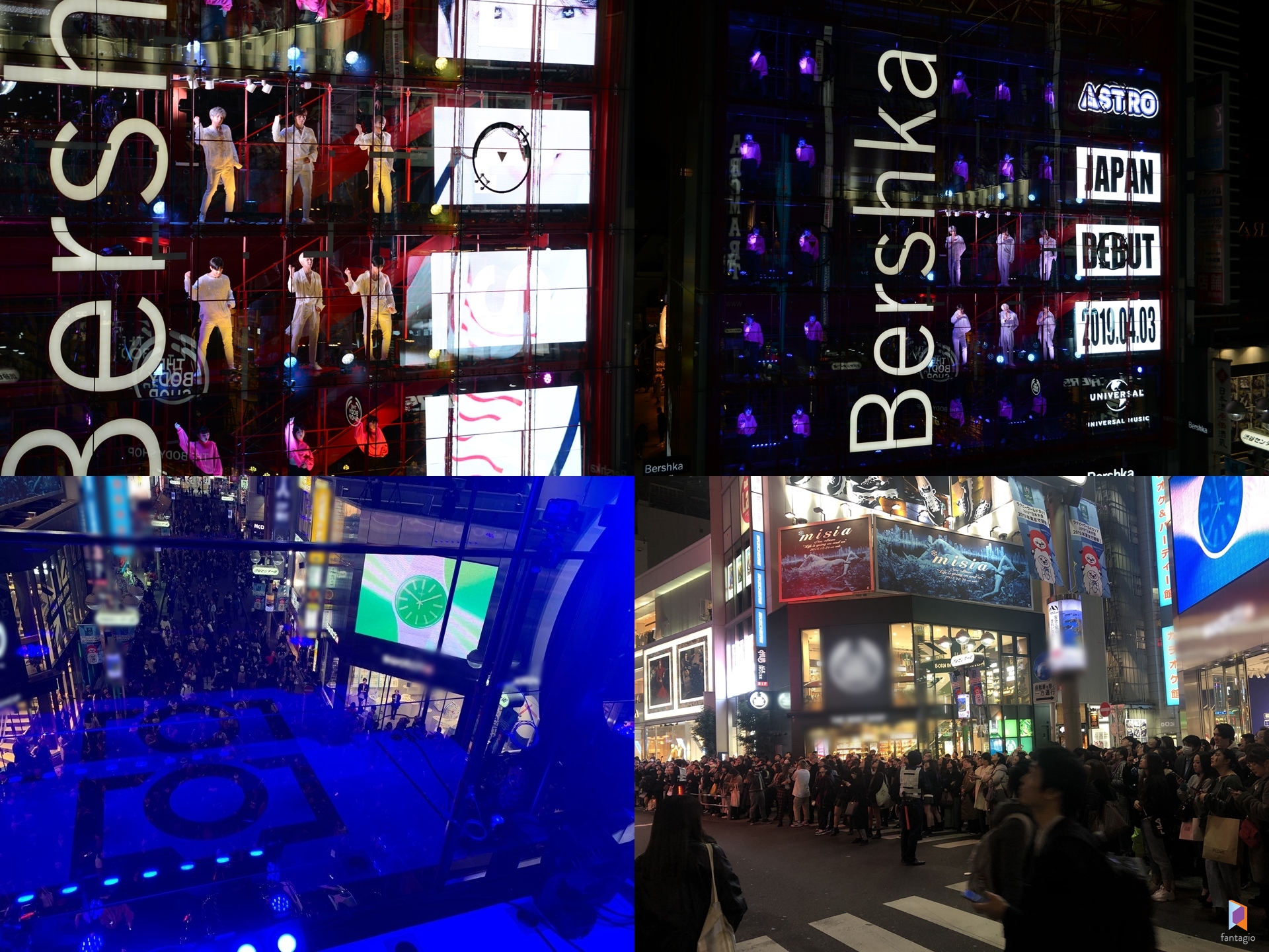 스페인 어패럴 브랜드 버쉬카(Bershka)의 거대한 쇼윈도에 깜짝 등장한 아스트로는 약 5분 동안 20여 명의 댄서와 함께 히트곡 ‘베이비(Baby)’, ‘니가 불어와(Crazy Sexy Cool)’등을 퍼포먼스와 함께 선보여 시부야 거리의 눈과 귀를 사로잡았다. 행사 당일 10분 전에 공지된 깜짝 이벤트였던 이번 이벤트는 현장에 있던 1000여 명의 사람들에게 열띤 환호성을 받으며 시부야 거리를 뜨겁게 달궜다.