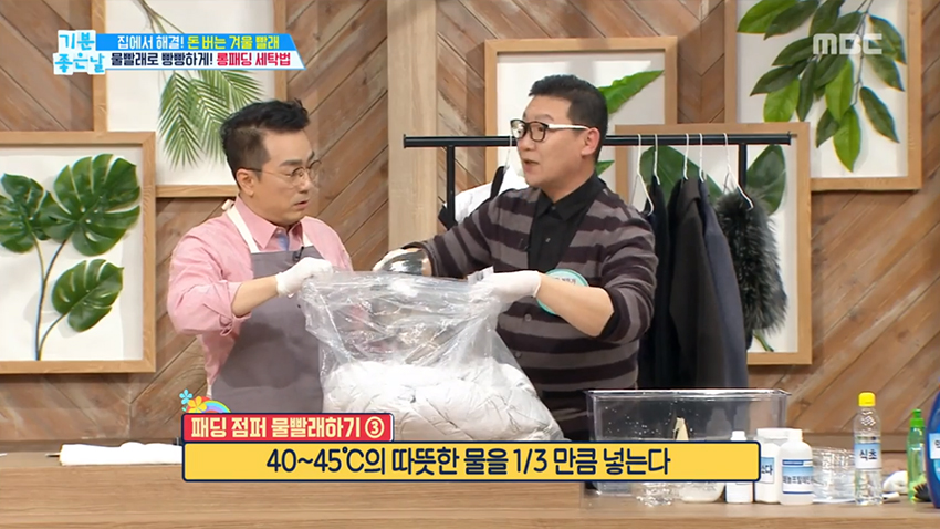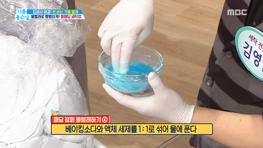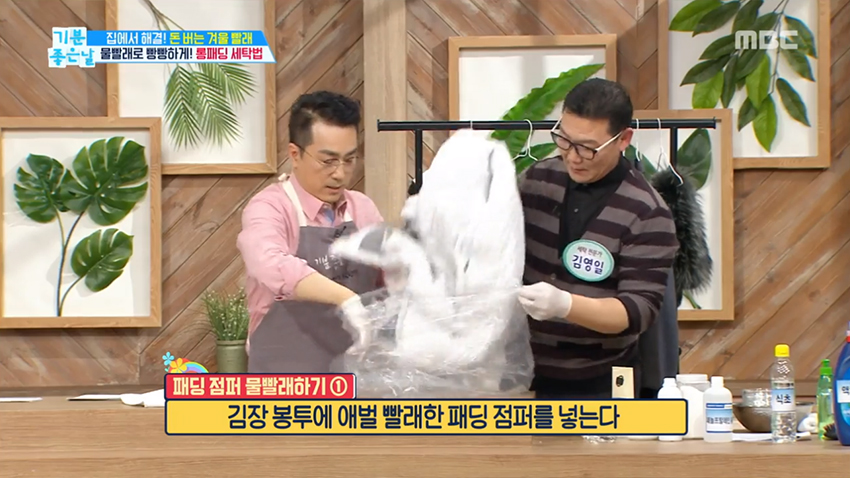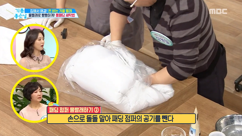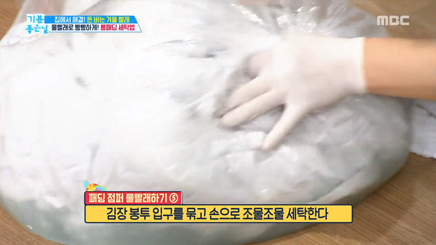 1. 김장 봉투에 애벌빨래한 패딩 점퍼를 넣는다.