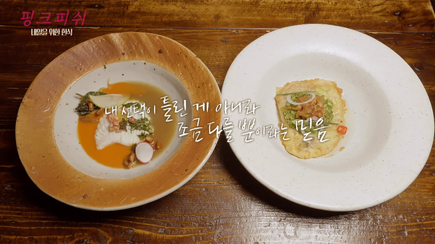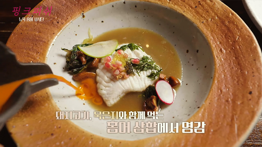박준우 셰프는 홍어가 가진 한식이 가진 가능성을 갖고 홍어 삼합에서 영감을 얻어 홍어와 돼지고기 육수, 묵은지 육수로 요리를 하였다.
