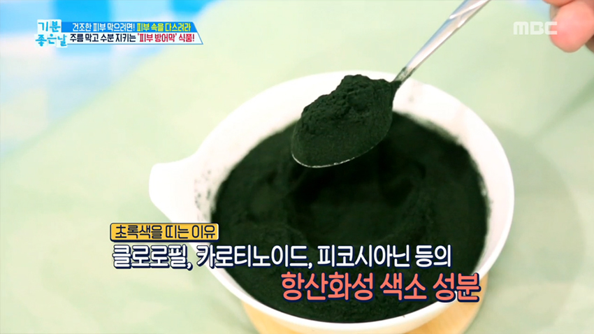 3. 클로로필, 카로티노이드, 피코시아닌 등의 항산화성 색소 성분 때문에 초록색을 띤다.