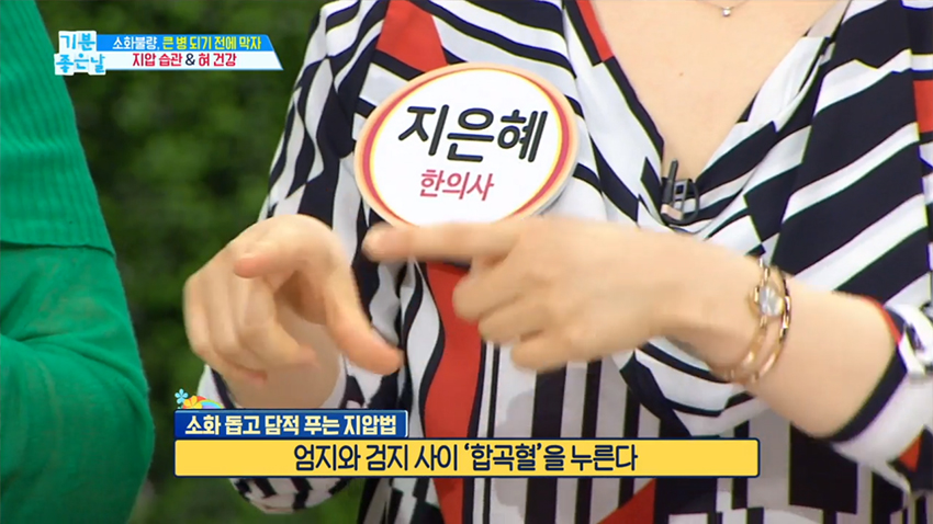 1. 엄지와 검지 사이를 합곡혈이라고 하는데 기혈순환이 원활하지 않을 경우 민감하게 작용한다.