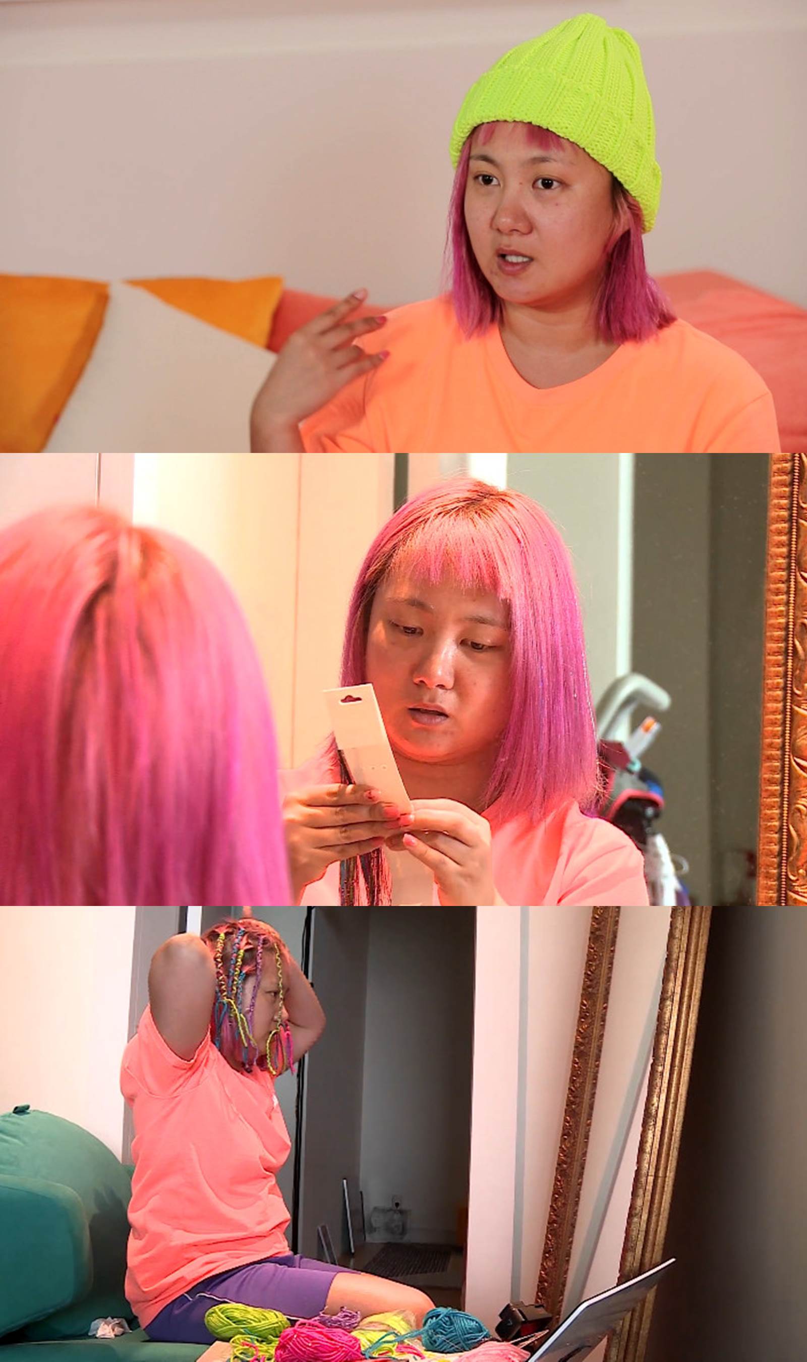 이어 그녀는 SS 트렌드로 꼽히는 네온 컬러들을 한 데 모아 아이유의 블레이즈 헤어를 시도, 아이유가 아닌 흡사 반딧불이를 연상케 하는 완성물(?)로 시청자들에게 배꼽 잡는 빅재미를 선사한다.