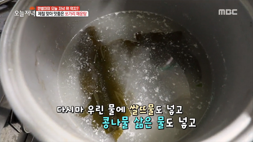 2. 강원도 감자와 무 위에 민물의 제왕 쏘가리를 넣고 이 집만의 비법인 다시마 우린 물, 쌀뜨물, 콩나물 삶은 물을 넣어 쏘가리 비린내를 잡아준다.