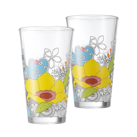화려한 플라워 패턴이 눈길을 끄는 아쿠아 글라스 텀블러입니다.