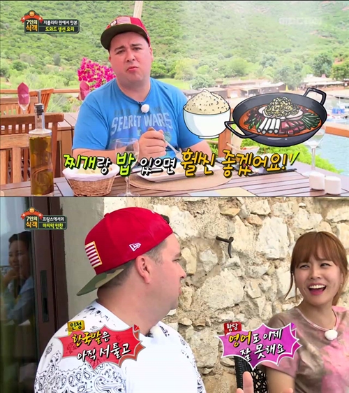 샘 해밍턴이 한국인에 더 가까운 모습을 보여 화제다. 8월 29일 오후 방송된 MBC 예능프로그램 <7인의 식객>에서 샘 해밍턴은 프랑스 요리를 먹으면서도 찌개와 밥 타령을 하는 놀라운 면모를 보였다.