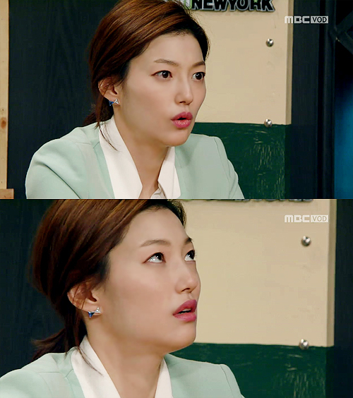 22일(목) 방송된 MBC 일일드라마 <엄마의 정원> 45회에서 자경(이엘 분)에게 청혼 했던 후배와 선후배로 지내기로 했다는 말에 태수(공정환 분)은 자경의 후배에게 질투한다. 이 장면에서 이엘은 민트 컬러의 화사한 코트를 착용해 눈길을 끌었다. 여기에 이엘은 스톤으로 리본형태를 만든 귀걸이를 착용해 얼굴이 화사하게 포인트를 주었다.