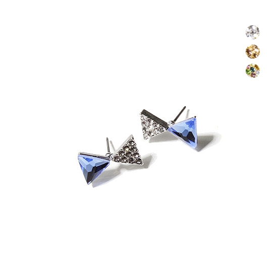리본 형태로 제작된 스톤&큐빅 귀걸이입니다.