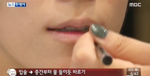 입술 중간부터 립스틱을 물들이듯 발라주면 조금 더 자연스러워 보인다고