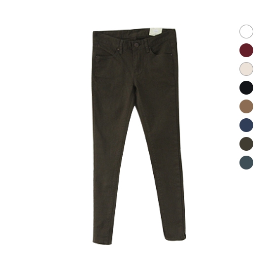 지퍼 장식으로 포인트를 준 슬림 라인 컬러 스키니진입니다.