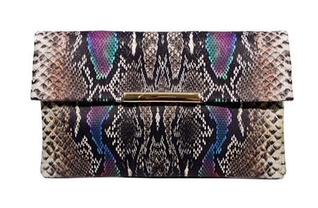 컬러풀한 색감과 뱀피 패턴으로 포인트를 준 클러치입니다.