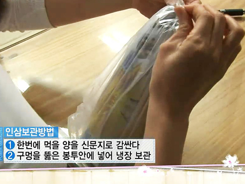 인삼은 수분함량이 많기 때문에 한 번에 먹을 양을 신문지로 감싼 뒤 구멍을 뚫은 봉투 안에