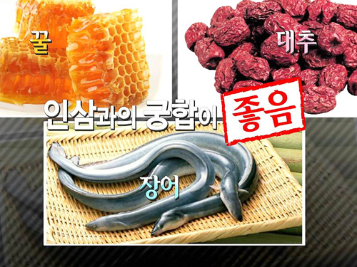 뿐만 아니라 꿀, 대추, 장어 또한 인삼과 잘 어울리는 음식인데 함께 곁들이면 인삼흡수가