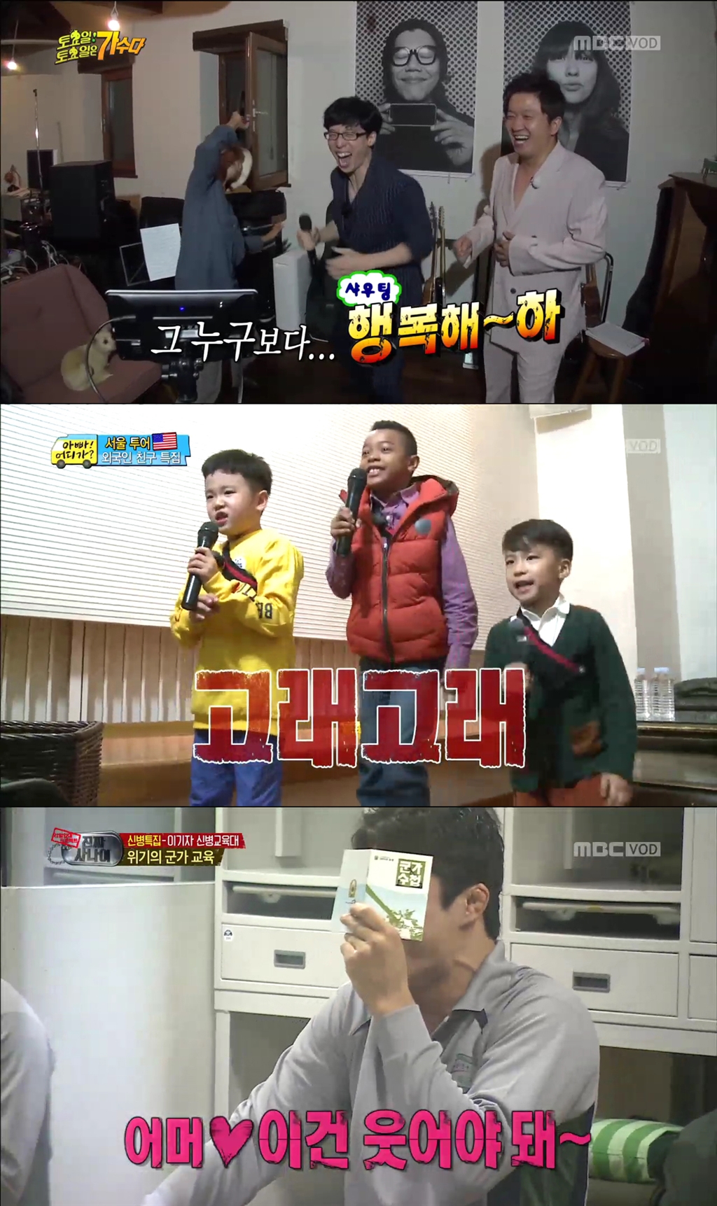 <일밤-아빠 어디가>에서 외국인 가족과 함께 서울 투어를 한 윤민수-윤후, 안정환-안리환 부자는 노래방을 찾았다. 현숙의 ‘춤추는 탬버린’이라는 의외의 선곡에 찬의 무표정 탬버린 댄스는 시작부터 100점이라는 쾌거를 이뤘다. 이어 태양의 ‘눈, 코, 입’, 빅뱅의 ‘판타스틱 베이비’, 싸이의 ‘강남스타일’ 등 아이들은 넘치는 끼를 주체하지 못하고 노래에 푹 빠져들었다.