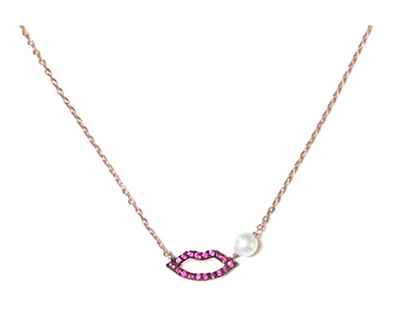넥라인에 핑크 큐빅 펜던트와 진주로 유니크함을 더해줄 목걸이입니다.